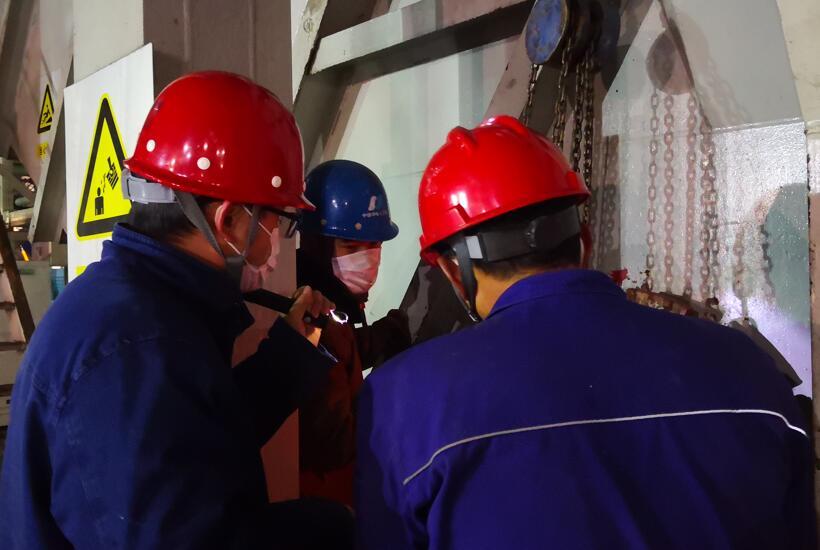 “目前來看,問題只可能是撈渣機底板與導(dǎo)輪間隙有問題或槽體內(nèi)刮板脫落,大家分頭重點排查這兩方面。”在大家茫然無措時,生產(chǎn)副總經(jīng)理徐光學(xué)一語點醒夢中人。鎖定“疑兇”,維護部副主任徐德剛迅速組織技術(shù)骨干研討。按照疫情防護需要,幾位專業(yè)行家距離一米以上,“吼”完了研討會,并在較短時間內(nèi)擬定出三個處理方案,但所有方案的前提均是“確定底板情況!”