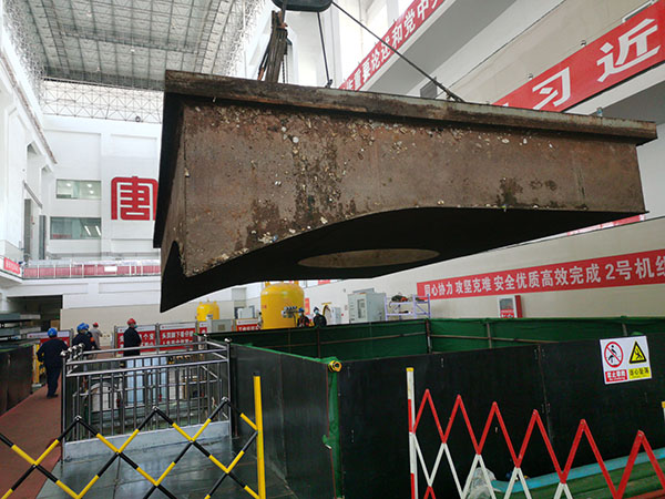 中國電力網(wǎng)訊 近日,內(nèi)蒙古大唐國際海勃灣水利樞紐開發(fā)有限公司在緊鑼密鼓地開展2號機組A級檢修工作,按照工期計劃安排,現(xiàn)場檢修工作有序推進,施工安全、進度及質(zhì)量可控在控,開工一周內(nèi),流道蓋板已成功吊出。