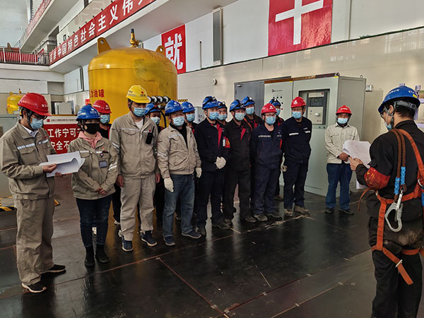 拆除工作開(kāi)始前,專業(yè)人員、檢修人員、監(jiān)理人員三方按照編制的專項(xiàng)吊裝方案認(rèn)真核對(duì)檢修措施,重點(diǎn)對(duì)主橋機(jī)供電系統(tǒng)、起升系統(tǒng)、吊具進(jìn)行檢查。同時(shí)組織工作負(fù)責(zé)人和工作班成員現(xiàn)場(chǎng)開(kāi)展三講一落實(shí)活動(dòng),著重對(duì)本次吊裝作業(yè)過(guò)程中存在的風(fēng)險(xiǎn)點(diǎn)和預(yù)控措施進(jìn)行現(xiàn)場(chǎng)講解。燈泡頭拆除過(guò)程中,由于尺寸原因泡頭與定子基座把合螺栓松開(kāi)后,未能按照預(yù)期直接放置到專用工具上。檢修指揮部現(xiàn)場(chǎng)研究方案,轉(zhuǎn)變思路,采用單側(cè)著力再逐步調(diào)整另一側(cè)的方案,把干涉區(qū)域盡量避開(kāi),整個(gè)拆除吊裝歷時(shí)5個(gè)小時(shí)順利完成。拆除吊運(yùn)期間,該公司各級(jí)人員到位監(jiān)督,有效保障了安全措施齊全可靠。現(xiàn)場(chǎng)檢修人員充分發(fā)揚(yáng)團(tuán)結(jié)協(xié)作、不怕吃苦、奮勇拼搏的工作精神,本著精益求精的工作態(tài)度,嚴(yán)格執(zhí)行安全規(guī)程、檢修工藝和工序,確保了整個(gè)拆除工作萬(wàn)無(wú)一失。