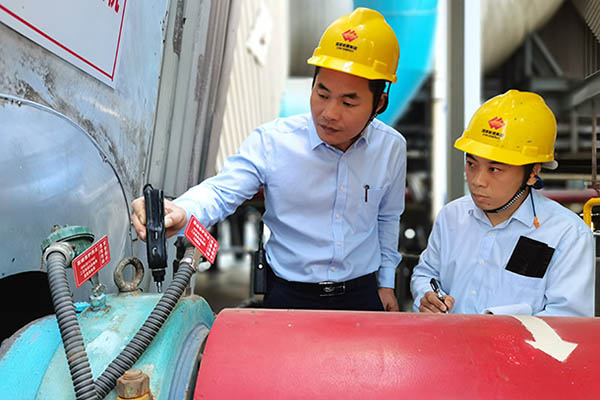 圖為運(yùn)行人員測(cè)量鍋爐高壓輔機(jī)振動(dòng)情況