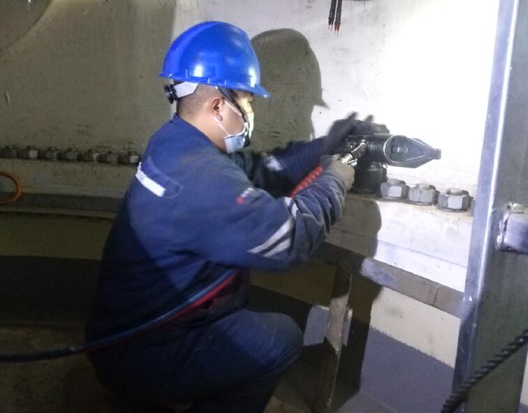 嚴守安全,質(zhì)量過關(guān)。風電場設(shè)立專責監(jiān)護人,對作業(yè)過程全程監(jiān)護,對風機定維互助檢修作業(yè)進行全程監(jiān)護,樹立紅線意識,嚴守安全底線,確保作業(yè)人員人身安全。在風電場的安全監(jiān)督下,互助檢修隊嚴格按照風機定維表中要求和現(xiàn)場培訓指導意見,發(fā)揚吃苦耐勞的精神,一絲不茍的態(tài)度,嚴肅認真的進行一臺臺風機的定期維護項目,全面細致地填寫維護記錄表內(nèi)容。截至目前,共完成4臺風機定維工作,在力矩校驗、油脂補充、衛(wèi)生清理等方面均達到合格標準,安全可控在控,質(zhì)量始終如一。