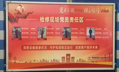 “發(fā)揮黨員模范帶頭作用,以身作則按期完成檢修任務!”一塊塊鮮紅的“黨員責任區(qū)”和“黨員承諾”展板,真正使黨員身份亮出來、作用顯出來、形象立起來。