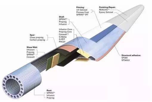 選擇預浸料生產風機葉片的主要缺陷是成本高。這種材料通常比普通樹脂和增強材料貴5~10倍。另外,由于預浸料是以手工方式鋪放的,與手糊相比,同屬勞動密集型,產量低。