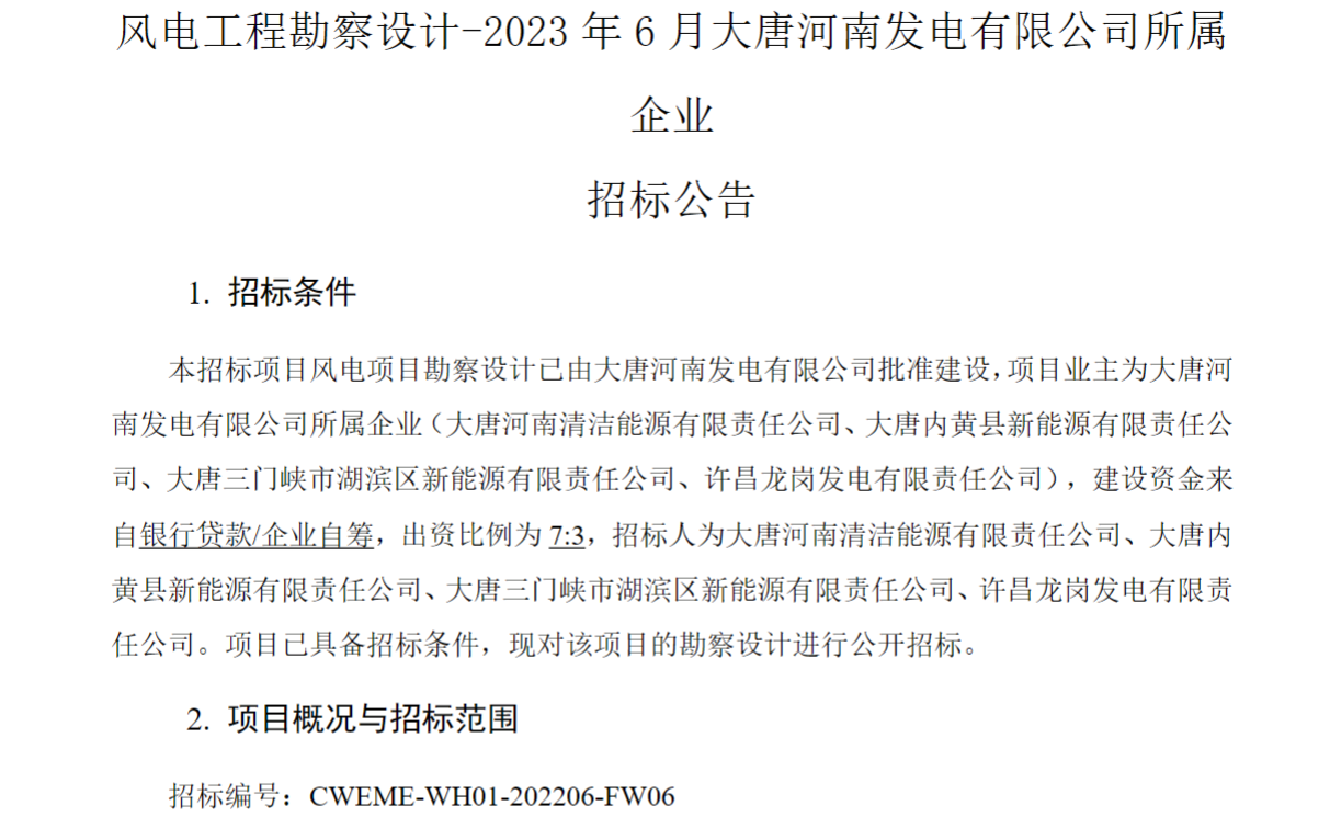 公告顯示,此次招標(biāo)包括四個(gè)風(fēng)電項(xiàng)目。