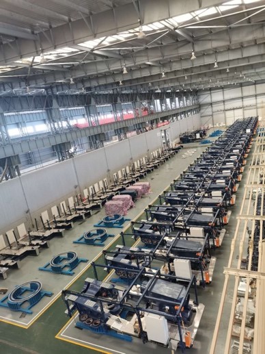 在大規(guī)模生產(chǎn)工作中,有效拓寬生產(chǎn)空間、采用精細(xì)化車(chē)間定置管理將極大提升生產(chǎn)效率。生產(chǎn)團(tuán)隊(duì)根據(jù)物資到貨情況及生產(chǎn)進(jìn)程,合理規(guī)劃空間布局,提高空間利用率的同時(shí)兼顧后續(xù)工序便利性。充分利用外場(chǎng)地及庫(kù)房空間,巧思布置,使得大批量存放半成品機(jī)組得以實(shí)現(xiàn)。整齊劃一的機(jī)組,形成了華銳風(fēng)電一道最美的風(fēng)景線。