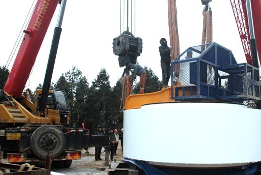 寒風(fēng)陣陣吹來,把起吊機(jī)的伸長(zhǎng)臂吹得搖搖晃晃。“目前由于風(fēng)速較大,不利于主機(jī)的吊裝。”王進(jìn)逆說,因此盡管現(xiàn)場(chǎng)相關(guān)人員早已各就各位,但都不能輕舉妄動(dòng),只有耐心地等待著風(fēng)速減弱,才可以相機(jī)行事。趁此之機(jī),記者向王進(jìn)逆了解主機(jī)的相關(guān)情況。