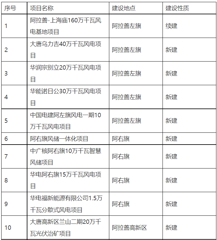 5月24日,內(nèi)蒙古阿拉善盟行政公署發(fā)布2022年重點(diǎn)項(xiàng)目中已審批新能源項(xiàng)目一覽表。