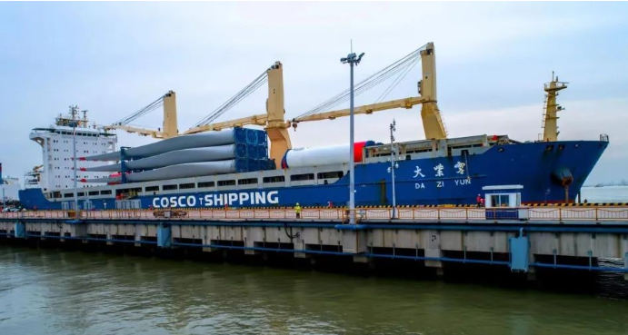 日前,裝載著中國電建成勘院孟加拉科巴項目二期北部風場的3套風機設備,中遠海運特運“大紫云”輪從江蘇常熟港順利啟航駛往孟加拉,預計將于7月8日抵達目的港。這是該項目北部風場第二批次貨物,此前該輪已將首批2套風機設備安全運抵項目所在地。