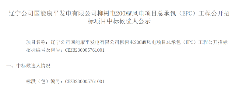 國能康平發(fā)電有限公司柳樹屯200MW風(fēng)電項(xiàng)目總裝機(jī)容量為200MW,安裝43臺(tái)單機(jī)容量為4550kW和1臺(tái)單機(jī)容量為4350kW的風(fēng)電機(jī)組,所選機(jī)型單位千瓦掃風(fēng)面積不低于6.2m2/kW,葉輪直徑不低于190m,輪轂高度140m,新建一座220kV升壓站。計(jì)劃工期:2023年7月31日-2024年6月30日
