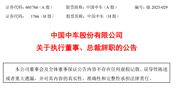 公告披露,2023年9月12日,中國中車董事會(huì)收到執(zhí)行董事、總裁樓齊良先生的辭職報(bào)告。樓齊良先生因工作調(diào)整原因辭去公司執(zhí)行董事、總裁、董事會(huì)戰(zhàn)略委員會(huì)委員、提名委員會(huì)委員職務(wù)。同時(shí), 辭去《香港聯(lián)合交易所有限公司證券上市規(guī)則》第3.05條項(xiàng)下的公司授權(quán)代表職務(wù)。辭職后,樓齊良先生不在公司及控股子公司擔(dān)任任何職務(wù)。