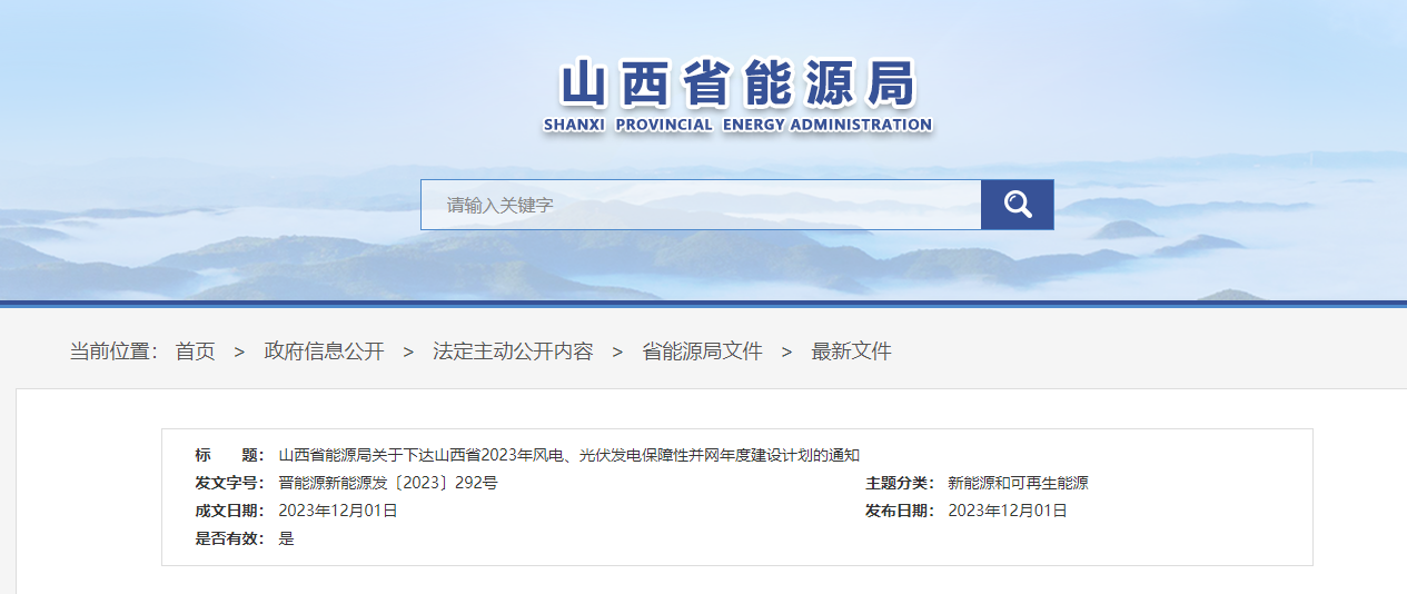 山西省能源局關(guān)于下達(dá)山西省2023年風(fēng)電、光伏發(fā)電保障性并網(wǎng)年度建設(shè)計(jì)劃的通知