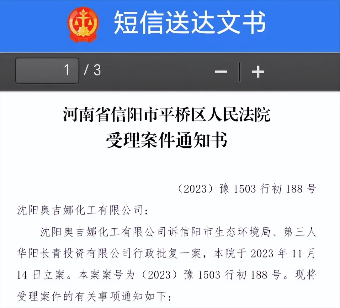 2023年10月18日,奧吉娜公司依據(jù)《行政訴訟法》和《行政訴訟法解釋》,將信陽市環(huán)境局和第三人華陽長青公司訴至信陽市平橋區(qū)人民法院,請求法院:1、判決撤銷被告作出的《信陽市生態(tài)環(huán)境局關(guān)于沈陽奧吉娜化工有限公司舉報華陽長青投資有限公司違法經(jīng)營及固始分局不作為、亂作為等問題調(diào)查處理的函》;2、責令被告針對原告于2023年8月3日向被告申訴舉報華陽長青投資有限公司事項,限期進行重新調(diào)查和答復(fù);3、請求人民法院判令被告2023年9月13日調(diào)查處理函認定的廢合成油不應(yīng)按危險廢物有關(guān)規(guī)定進行管理,違反法律規(guī)章的規(guī)定,無效。(奧吉娜合成油)