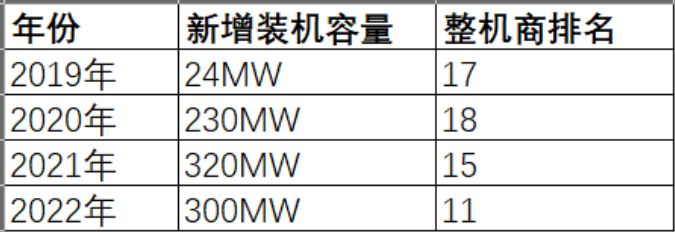 在華儀電氣正處在資本市場的水深火熱之時,2020年退市并逐漸卸掉包袱的華銳風(fēng)電,近年來卻表現(xiàn)出強勁的增長勢頭。2019-2022年,華銳風(fēng)電新增裝機(jī)排名不斷向上提升。