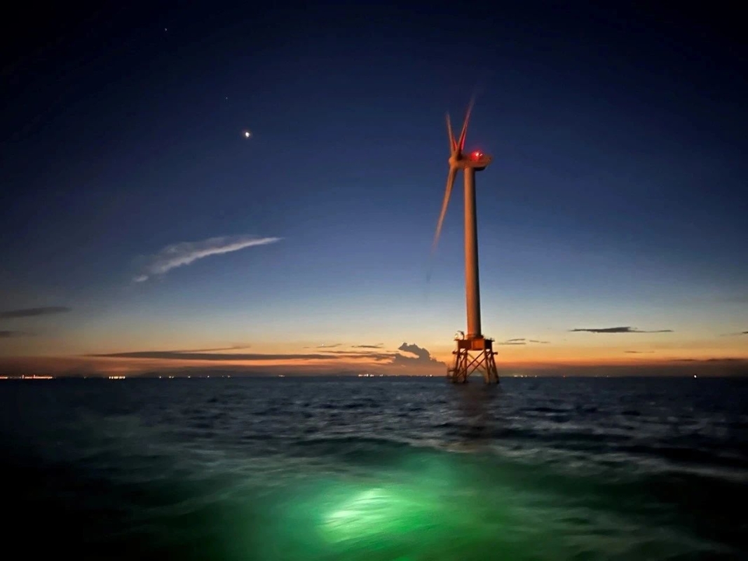 暮色中的16兆瓦海上風(fēng)電機(jī)組 攝影:張涑湄