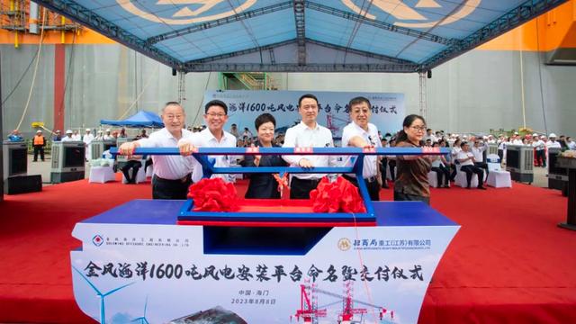 8月8日,新一代深遠(yuǎn)海1600噸風(fēng)電安裝平臺“中天31”命名暨交付儀式在江蘇南通舉行。南通市委副書記、代市長張彤,陽江市委副書記、市長余金富,招商局工業(yè)集團(tuán)黨委副書記、副總經(jīng)理吳四川,金風(fēng)科技集團(tuán)董事長武鋼,中天科技集團(tuán)董事長薛濟(jì)萍,以及三峽集團(tuán)、國家電投集團(tuán)、中廣核新能源公司等客戶代表出席儀式。