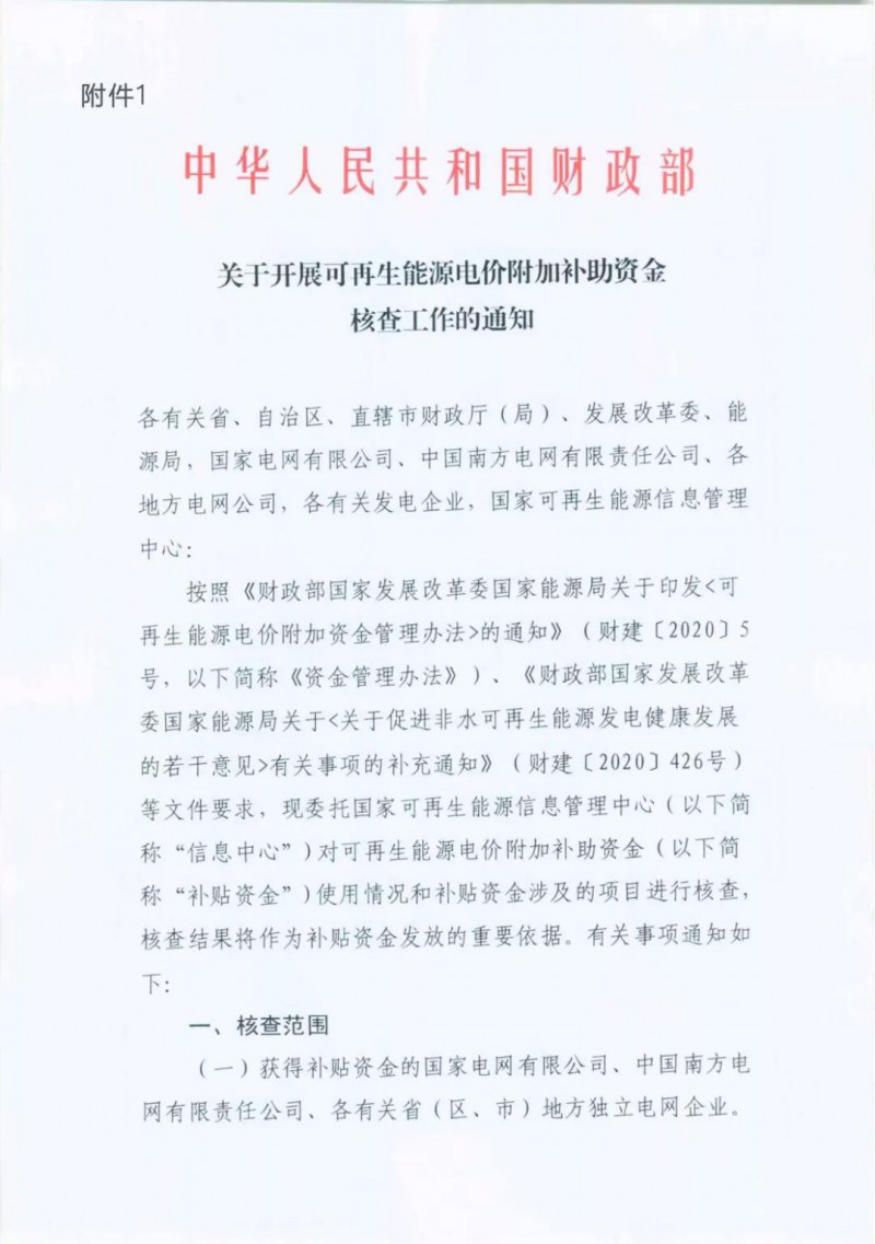 近日,財(cái)政部經(jīng)濟(jì)建設(shè)司、國(guó)家發(fā)改委價(jià)格司、國(guó)家能源局新能源司聯(lián)合印發(fā)《關(guān)于開(kāi)展可再生能源電價(jià)附加補(bǔ)助資金核查工作的通知》,委托國(guó)家可再生能源信息管理中心對(duì)可再生能源電價(jià)附加補(bǔ)助資金使用情況、涉及項(xiàng)目進(jìn)行核查。