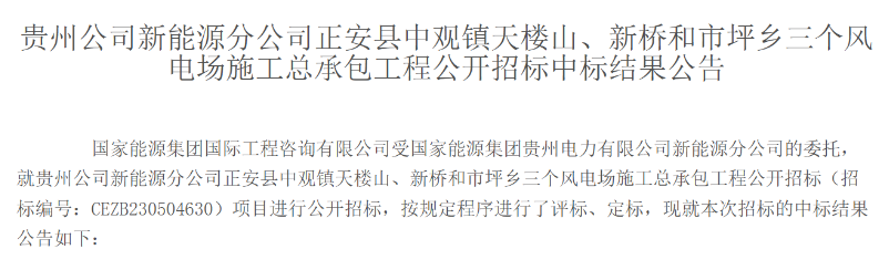 公告顯示,中國(guó)電建集團(tuán)貴州工程有限公司成功中標(biāo)該項(xiàng)目,中標(biāo)價(jià)格為29242.222800萬元。