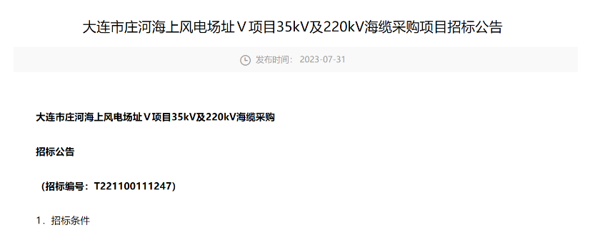 交貨計(jì)劃:賣方應(yīng)保證35kV海纜2023年9月30日前具備交貨條件,供貨需滿足現(xiàn)場(chǎng)施工進(jìn)度要求,具體時(shí)間、批次及數(shù)量以買方通知為準(zhǔn);220kV海纜2023年11月15日前具備交貨條件,具體時(shí)間以買方通知為準(zhǔn);220kV陸纜2023年9月30日前具備交換條件,具體時(shí)間以買方通知為準(zhǔn)。