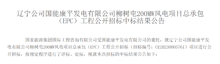 國能康平發(fā)電有限公司柳樹屯200MW風電項目總裝機容量為200MW,安裝43臺單機容量為4550kW和1臺單機容量為4350kW的風電機組,所選機型單位千瓦掃風面積不低于6.2m2/kW,葉輪直徑不低于190m,輪轂高度140m,新建一座220kV升壓站。計劃工期:2023年7月31日-2024年6月30日。