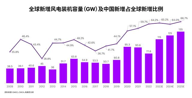 未來三年,全球新增風電裝機容量將保持15%以上的復合增長率,突破375GW,中國風電新增裝機容量占全球比重預計將保持在50%以上,持續(xù)引領全球風電增長。