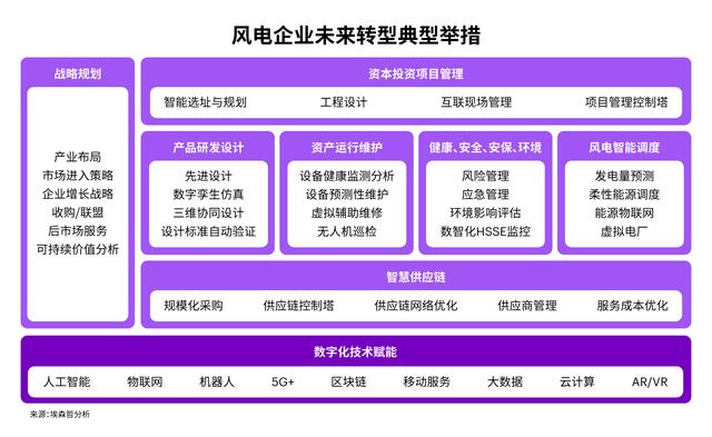 人工智能、物聯(lián)網(wǎng)、AR/VR、5G等數(shù)字技術快速發(fā)展,成為了風電企業(yè)轉型的強大助力,通過將數(shù)字化、智能化解決方案嵌入核心業(yè)務及全產(chǎn)業(yè)鏈,更有效支撐企業(yè)運營管理優(yōu)化。