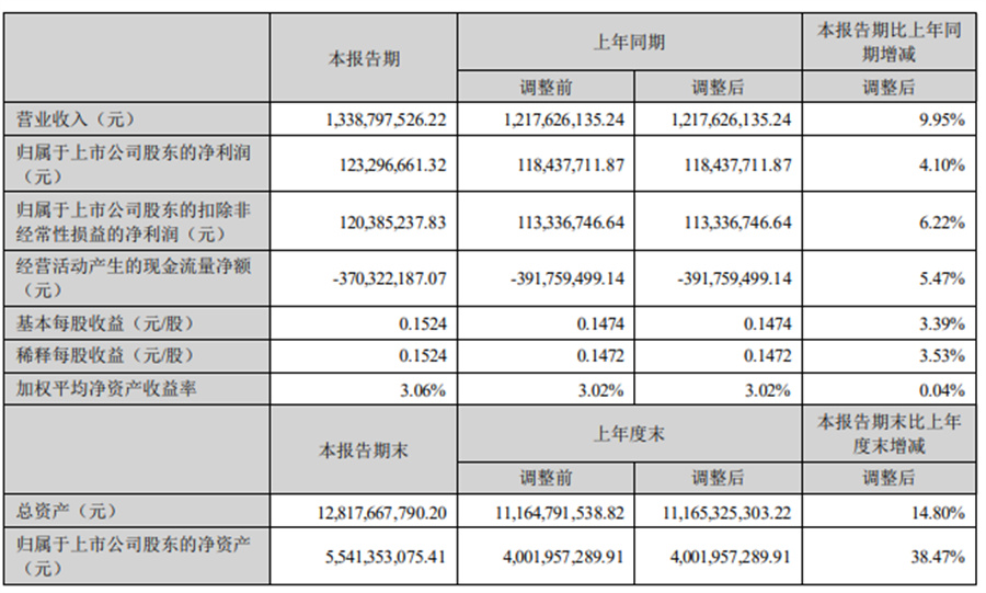(一)報(bào)告期內(nèi)主營(yíng)業(yè)務(wù)情況 報(bào)告期內(nèi),公司實(shí)現(xiàn)營(yíng)業(yè)收入約 133,879.75 萬(wàn)元,較上年同期增長(zhǎng) 9.95%,實(shí)現(xiàn)歸屬于上市公司股 東的凈利潤(rùn)約 12,329.67 萬(wàn)元,較上年同期增長(zhǎng) 4.10%。