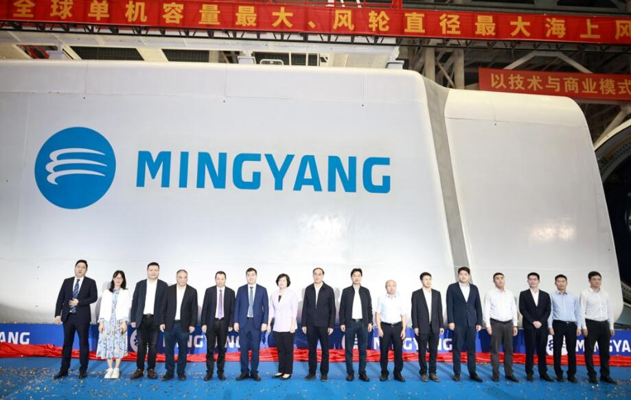 MySE18.X-20MW機(jī)組的下線,是明陽(yáng)堅(jiān)持技術(shù)創(chuàng)新,始終將推動(dòng)海上風(fēng)機(jī)容量大型化、高質(zhì)量發(fā)展視為己任的最好詮釋。明陽(yáng)十年一劍,對(duì)大容量機(jī)組創(chuàng)新求索的腳步從未停歇,并一步一個(gè)腳印,始終穩(wěn)健。從2015年MySE3.0MW海上機(jī)型下線,并應(yīng)用于廣東省首個(gè)海上風(fēng)電項(xiàng)目;到2017年彼時(shí)全球風(fēng)輪直徑最大抗臺(tái)風(fēng)型MySE5.5-7.0MW平臺(tái)機(jī)組下線;再到2019年全球單機(jī)容量最大的半直驅(qū)抗臺(tái)風(fēng)型海上機(jī)型MySE8-10MW下線;直至2022年的MySE12MW機(jī)組、2023年的MySE16MW機(jī)組,直至今日的MySE18.X-20MW機(jī)組的陸續(xù)下線,明陽(yáng)一路創(chuàng)新,一路領(lǐng)航,致力于以大型機(jī)組提升區(qū)域風(fēng)資源利用率,推動(dòng)風(fēng)電平價(jià)化發(fā)展,不斷為我國(guó)新時(shí)代新能源高質(zhì)量發(fā)展貢獻(xiàn)力量。如今,明陽(yáng)機(jī)組已遍布廣東、福建、山東、廣西、江蘇、海南等地的海域,源源不斷貢獻(xiàn)綠色電力。這些產(chǎn)品和成果展示了明陽(yáng)的創(chuàng)新實(shí)力、發(fā)展速度和社會(huì)擔(dān)當(dāng),不僅實(shí)現(xiàn)了機(jī)組容量從小到大,機(jī)組性能從強(qiáng)到優(yōu)的突破,更是推動(dòng)和引領(lǐng)風(fēng)電行業(yè)邁向一個(gè)又一個(gè)新的臺(tái)階。