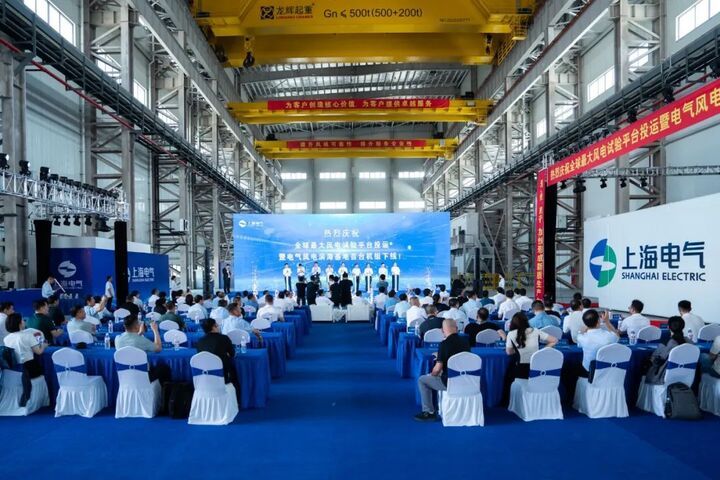 日前,全球最大風(fēng)電試驗(yàn)平臺(tái)——上海電氣風(fēng)電全功率平臺(tái)在上海電氣風(fēng)電濱海基地投運(yùn)。當(dāng)天,上海電氣風(fēng)電濱海基地首臺(tái)機(jī)組同時(shí)下線。