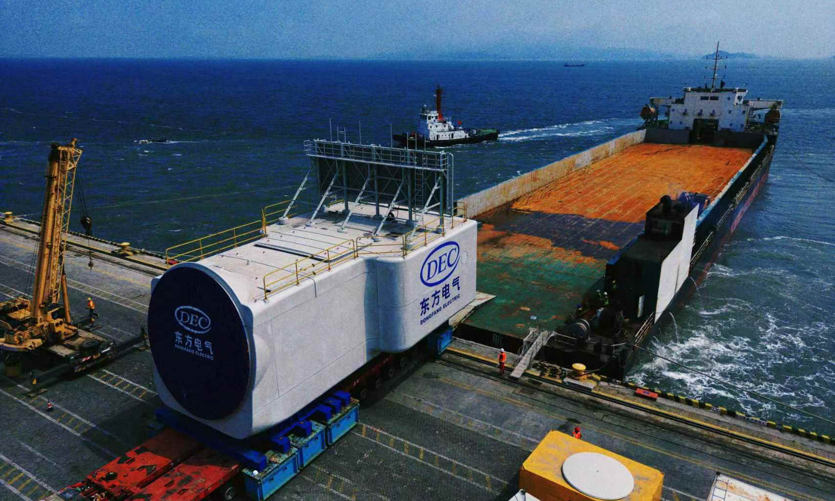 近日,由東方電氣集團(tuán)研制的全球單機(jī)容量最大26兆瓦海上風(fēng)電機(jī)組核心部件——153米全球最長(zhǎng)葉片和超500噸全球最重機(jī)艙,安全抵達(dá)山東東營(yíng)廣利港。