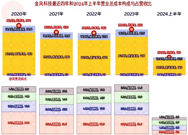 產(chǎn)生這些差異的主要原因是主營(yíng)業(yè)務(wù)盈利空間變化了,2020年是3.4個(gè)百分點(diǎn),2021年接近8個(gè)百分點(diǎn),遙遙領(lǐng)先。2022年和2023年就只有可憐的不到一個(gè)百分點(diǎn),與2020年毛利率差不多,主要差在期間費(fèi)用占營(yíng)收比上了,準(zhǔn)確說是差在營(yíng)收規(guī)模比2020年低了。2024年上半年的期間費(fèi)用控制下來了,再加上營(yíng)收反彈,主營(yíng)業(yè)務(wù)盈利空間擴(kuò)大至了4.4個(gè)百分點(diǎn),比2020年高,但營(yíng)收規(guī)模上還有差距,就導(dǎo)致盈利能力還是要差一些。