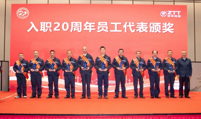 大會(huì)回顧了中天海纜二十年來的發(fā)展歷程,發(fā)布高壓海纜、高壓陸纜新產(chǎn)品新技術(shù)成果。會(huì)議表彰了在中天海纜奮斗20年的員工,薛濟(jì)萍為員工代表頒發(fā)履職20周年紀(jì)念獎(jiǎng)杯。