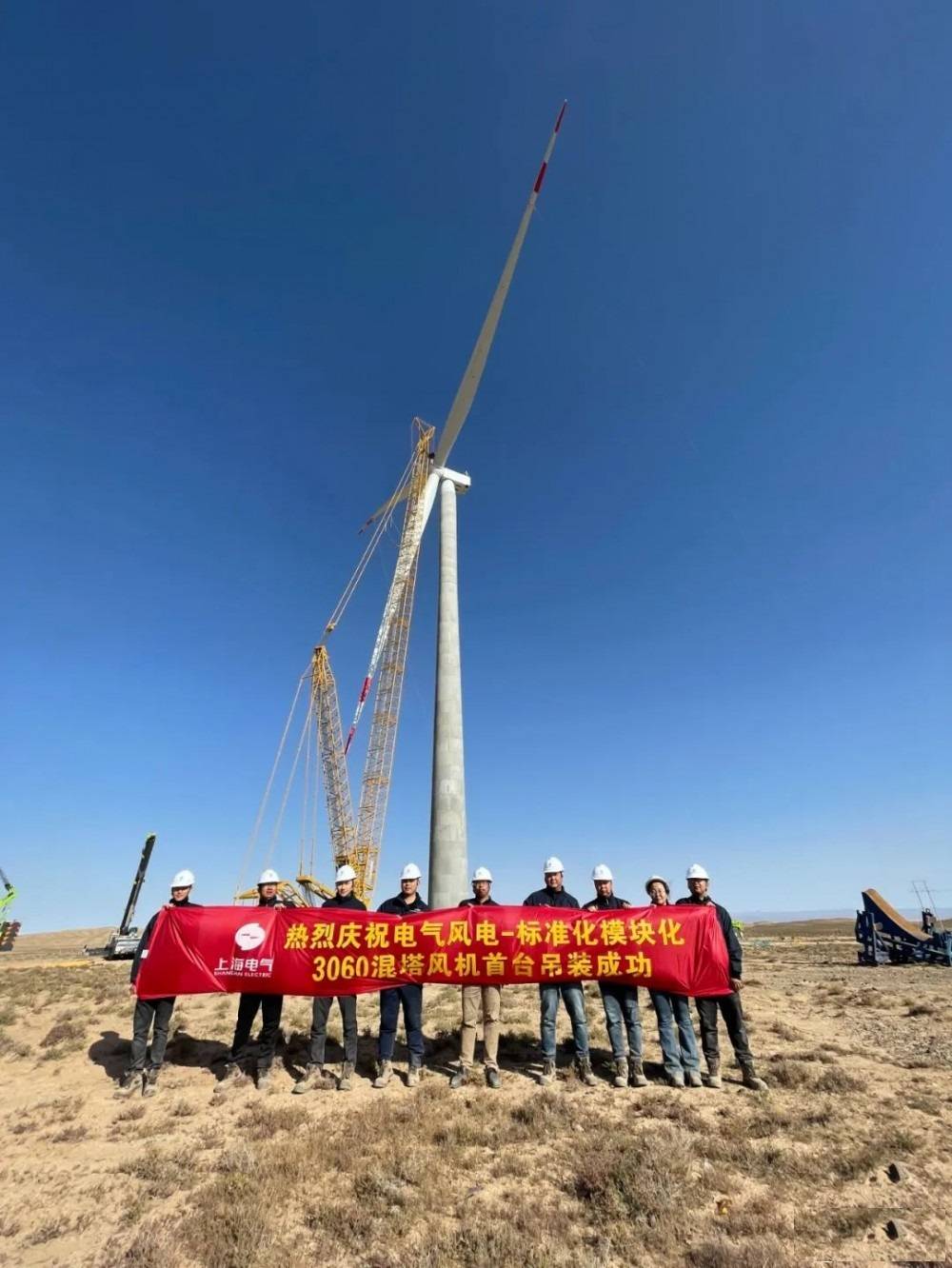 近年來,混塔(鋼-混凝土混合塔架)憑借著剛度大、安全穩(wěn)定性高、原材料成本低等各項(xiàng)優(yōu)勢在風(fēng)切變指數(shù)較高的低風(fēng)速地區(qū)得到了廣泛應(yīng)用,為用戶帶來了明顯的收益、得到了用戶的普遍認(rèn)可。2022年10月21日,電氣風(fēng)電首臺自研自制的標(biāo)準(zhǔn)化、模塊化“3060混塔”型風(fēng)電機(jī)組卓刻平臺WH6.25N-182,在甘肅省金昌市潮水山戈壁灘順利完成吊裝。該機(jī)組的順利吊裝標(biāo)志著:電氣風(fēng)電自研混塔正式進(jìn)入批量商業(yè)化應(yīng)用階段。