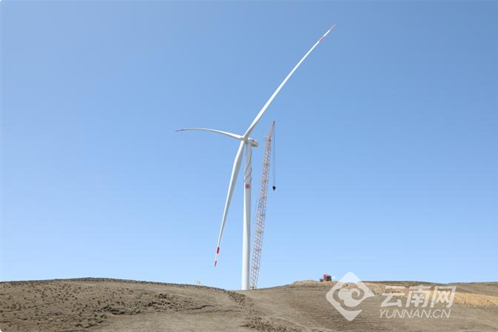首臺(tái)風(fēng)機(jī)完成吊裝。大唐滇中新能源事業(yè)部供圖