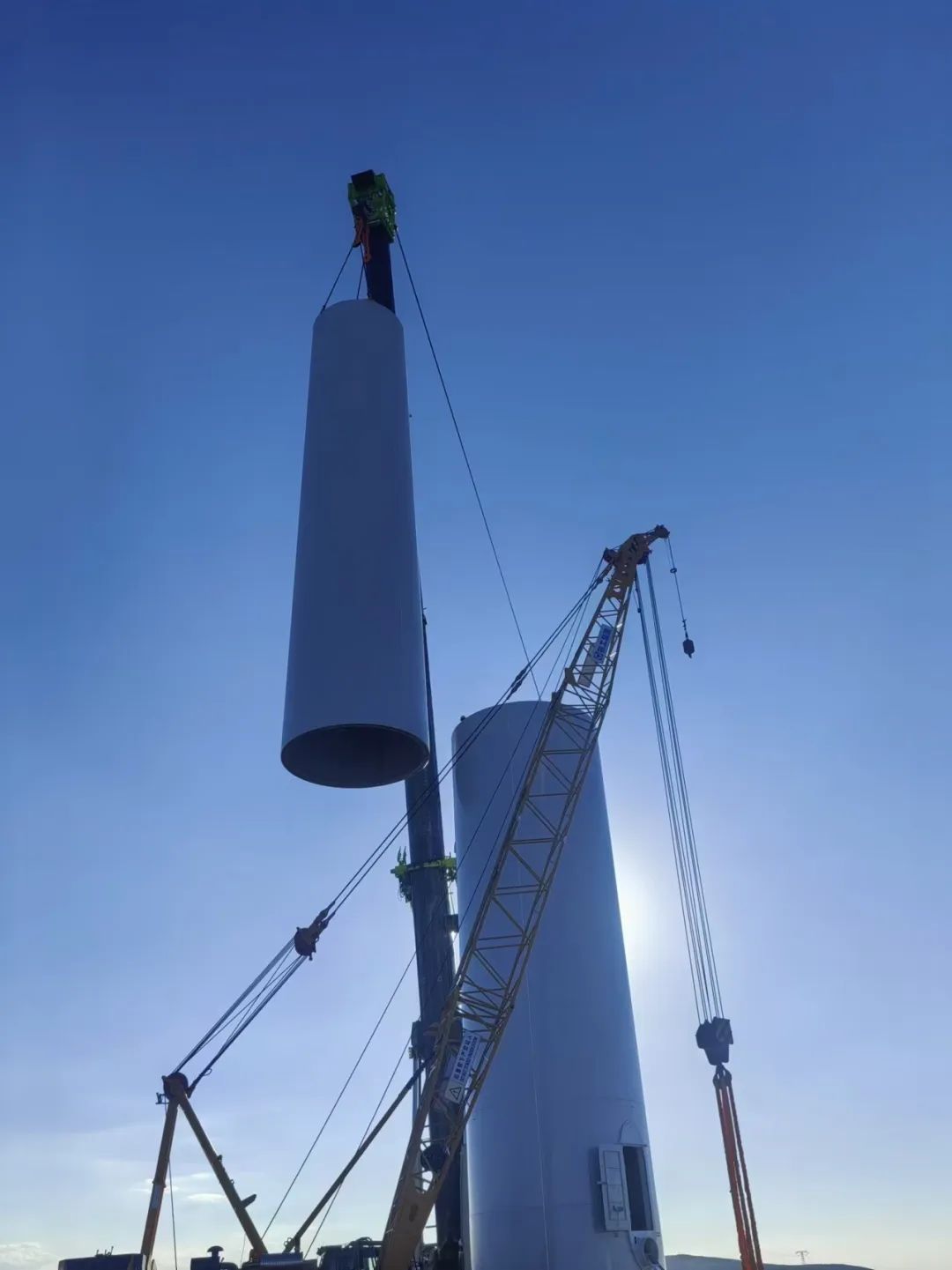 木壘東新新能源分片式項目首套塔筒順利吊裝