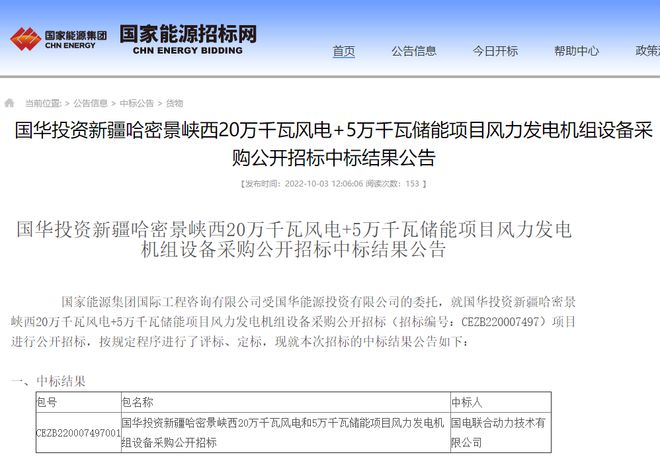 近日,國(guó)華投資新疆哈密景峽西20萬(wàn)千瓦風(fēng)電+5萬(wàn)千瓦儲(chǔ)能項(xiàng)目風(fēng)力發(fā)電機(jī)組設(shè)備采購(gòu)公開(kāi)招標(biāo)中標(biāo)結(jié)果公告,國(guó)電聯(lián)合動(dòng)力中標(biāo),中標(biāo)價(jià)43580萬(wàn)元,折合單價(jià)2179元/kW。