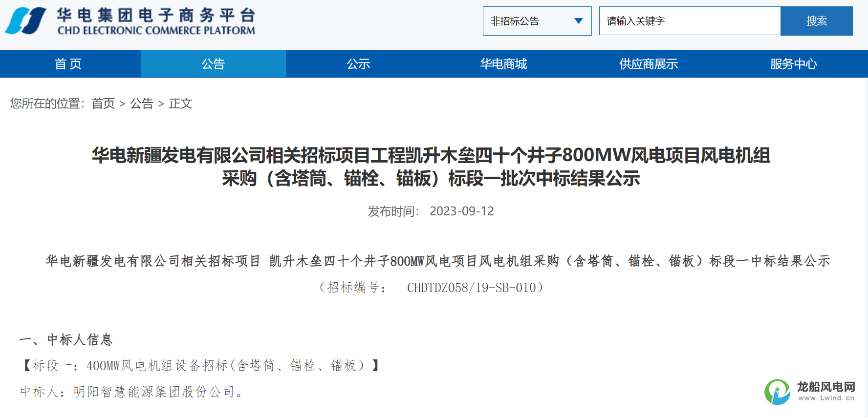 公告顯示,明陽(yáng)智慧能源集團(tuán)股份公司成功中標(biāo)標(biāo)段一,中標(biāo)價(jià)格為59480.000000萬(wàn)元。