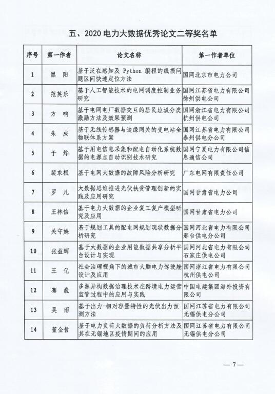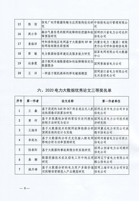 附件:2020電力大數(shù)據(jù)優(yōu)秀應(yīng)用創(chuàng)新成果(論文)獲獎名單