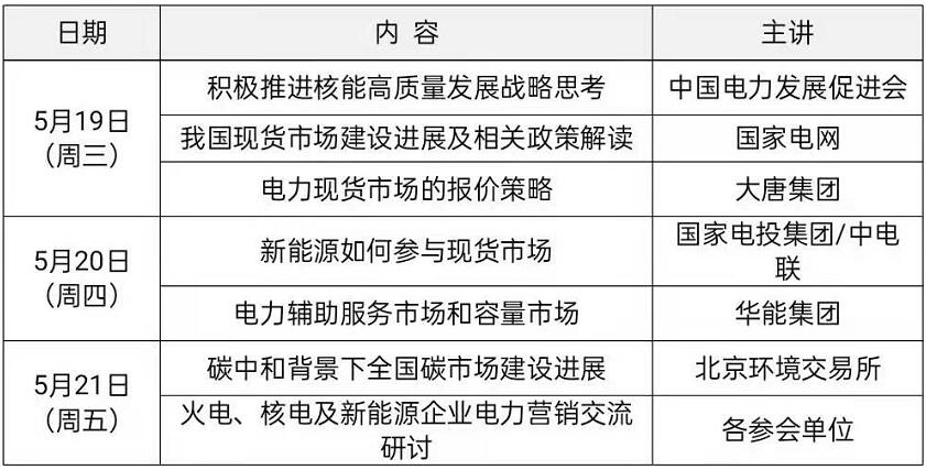 為幫助發(fā)電企業(yè)、售電公司更好地了解現(xiàn)貨交易規(guī)則、試點(diǎn)省份營(yíng)運(yùn)現(xiàn)狀、市場(chǎng)營(yíng)銷策略、電力輔助服務(wù)等情況,中國(guó)電力發(fā)展促進(jìn)會(huì)計(jì)劃舉辦“2021年電力現(xiàn)貨市場(chǎng)培訓(xùn)研討會(huì)”。
