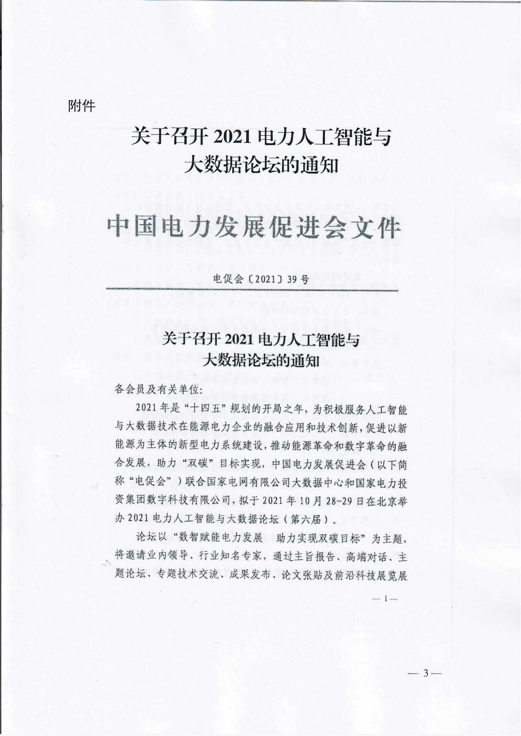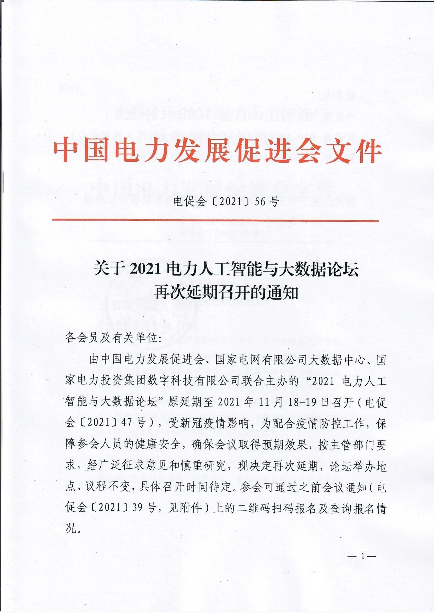 關(guān)于2021電力人工智能與大數(shù)據(jù)論壇再次延期召開的通知