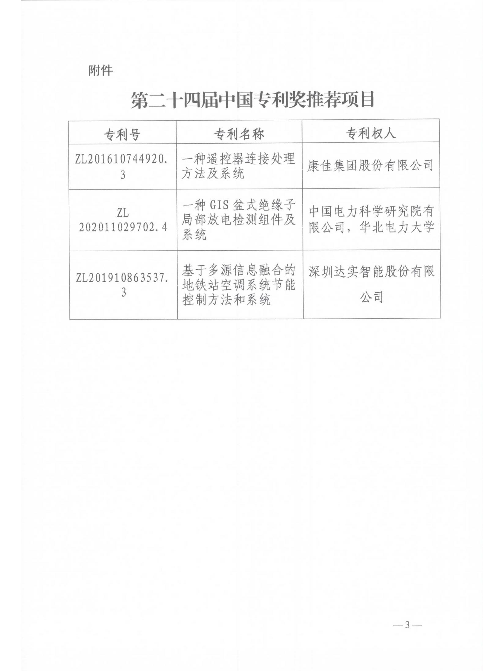 關(guān)于公示第二十四屆中國專利獎推薦項目的通知
