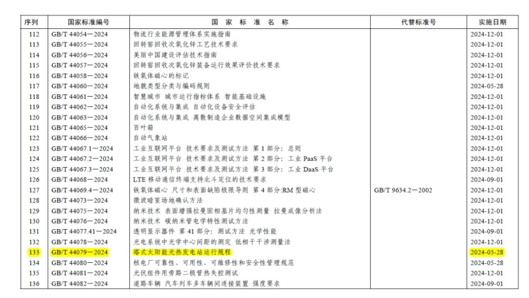 近日,中國能建工程研究院和中國能建科技發(fā)展有限公司共同主導(dǎo)編制的GB/T44079-2024《塔式太陽能光熱發(fā)電站運(yùn)行規(guī)程》(Code for Operation of Solar Power Tower Plant)正式發(fā)布實(shí)施。該標(biāo)準(zhǔn)由中國能建主導(dǎo)編制,是我國首個(gè)塔式光熱電站運(yùn)行標(biāo)準(zhǔn),也是中國能建標(biāo)準(zhǔn)化工作領(lǐng)域的再一次突破。