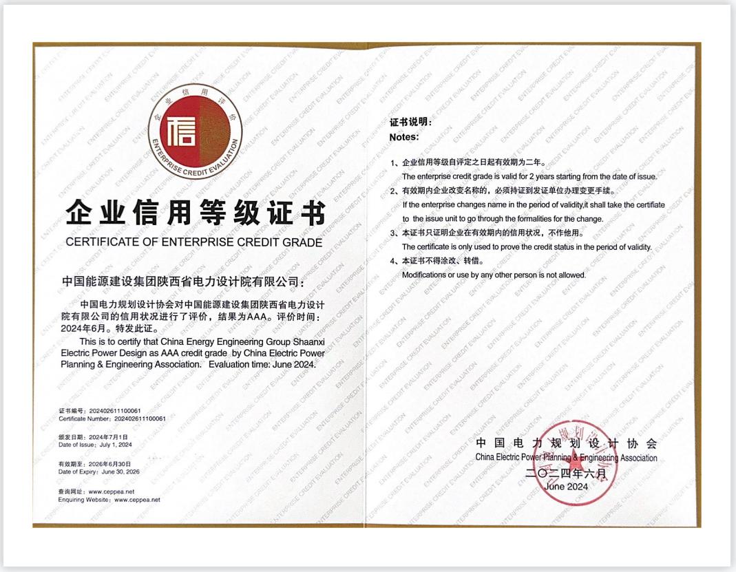 近日,中國能建陜西院獲評“AAA級信用企業(yè)”榮譽稱號。這是陜西院收獲的又一重要殊榮,代表了權(quán)威機構(gòu)及社會各界對該企業(yè)在誠信經(jīng)營方面的認(rèn)可。