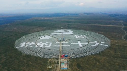 光熱之城上的東方明珠。從海拔3000米的青藏高原塔拉灘龍羊峽眺望,一座高達(dá)210米的吸熱塔熠熠閃光。古老的母親河畔,方圓2.12平方公里的“光熱之城”分布著近3萬(wàn)面20平方米的定日鏡,這里就是青海共和50兆瓦光熱發(fā)電項(xiàng)目。