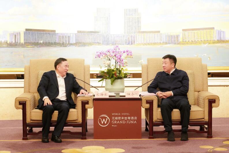 杜小剛對宋海良一行到訪表示歡迎,對中國能建為無錫發(fā)展作出的貢獻表示感謝,并簡要介紹了無錫市經(jīng)濟社會發(fā)展情況。他說,當(dāng)前,無錫正全面落實習(xí)近平總書記視察江蘇重要講話指示精神,大力推進能源綠色低碳轉(zhuǎn)型、資本金融產(chǎn)業(yè)和基礎(chǔ)設(shè)施建設(shè),加快打造新時代工商名城,爭當(dāng)踐行新發(fā)展理念高質(zhì)量發(fā)展示范區(qū)和中國式現(xiàn)代化建設(shè)的城市范例,呈現(xiàn)出良好的發(fā)展態(tài)勢。他表示,中國能建是我國能源電力、基礎(chǔ)設(shè)施建設(shè)國家隊、主力軍,企業(yè)業(yè)務(wù)布局與無錫市未來發(fā)展戰(zhàn)略高度契合,雙方合作空間廣闊,希望中國能建持續(xù)關(guān)注無錫、加碼無錫,聚焦新興產(chǎn)業(yè)、未來產(chǎn)業(yè)等方向,發(fā)揮企業(yè)經(jīng)營優(yōu)勢、科技優(yōu)勢、資源優(yōu)勢,導(dǎo)入更多城市建設(shè)、生態(tài)治理、軌道交通、市政配套等資源,合力搶占新能源產(chǎn)業(yè)新賽道,助力無錫奮力在國家“強起來”的歷史進程中烙下鮮明印記。無錫將提供最優(yōu)質(zhì)服務(wù)、營造最優(yōu)良環(huán)境,與中國能建并肩扛起新使命、攜手譜寫新篇章,樹立新時代央地合作新典范,合力為高質(zhì)量發(fā)展大局作出更大貢獻。