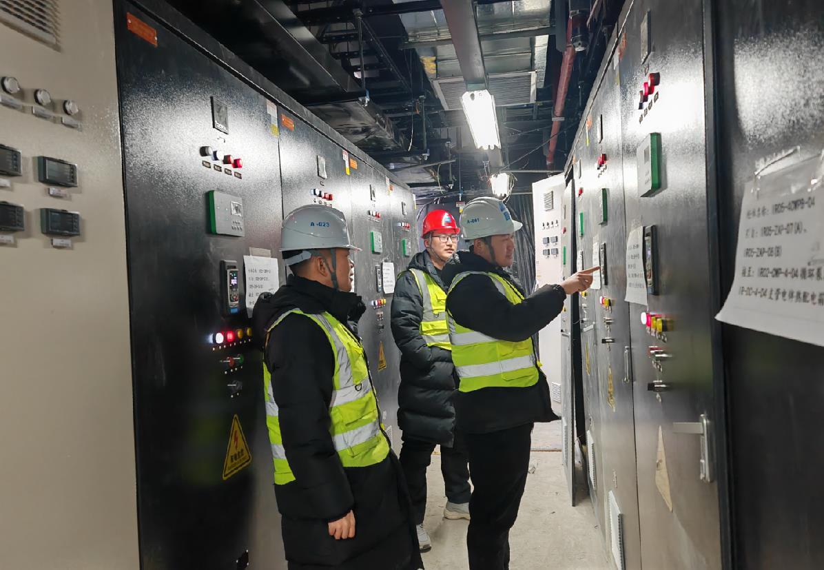 “必須保證所有變電所分閘,防止重新送電時(shí)電流直接沖擊設(shè)備”“屋面泵房再去兩個(gè)人,重新起泵并保證壓力正常”“拿好對(duì)講機(jī),一間屋一間屋地送電”……現(xiàn)場(chǎng)總指揮、項(xiàng)目生產(chǎn)經(jīng)理閆鵬的聲音堅(jiān)定有力,全體值班人員嚴(yán)陣以待,緊張有序地執(zhí)行著操作指令。送電后,屋面泵房傳來水泵“轟隆隆”的機(jī)器運(yùn)轉(zhuǎn)聲。調(diào)試成功有效驗(yàn)證了柴發(fā)機(jī)組自身穩(wěn)定性和機(jī)組系統(tǒng)負(fù)荷控制能力,值班人員激動(dòng)地歡呼。