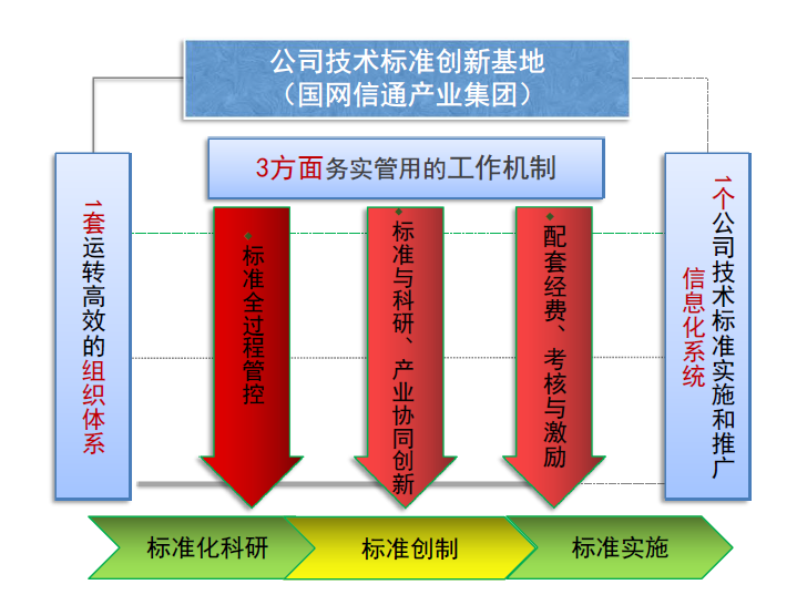 該創(chuàng)新基地基于2019籌建工作基礎(chǔ),進(jìn)一步健全了“1+3+1”組織體系和工作機(jī)制(即:以搭建一套運(yùn)轉(zhuǎn)高效的組織體系為核心,以構(gòu)設(shè)“標(biāo)準(zhǔn)全過程管控,標(biāo)準(zhǔn)與科研、產(chǎn)業(yè)協(xié)同創(chuàng)新,配套經(jīng)費(fèi)、考核與激勵(lì)”三方面務(wù)實(shí)管用的工作機(jī)制為抓手,以建設(shè)完善一個(gè)公司技術(shù)標(biāo)準(zhǔn)實(shí)施和推廣信息化系統(tǒng)為依托,統(tǒng)籌推進(jìn)創(chuàng)新基地各項(xiàng)任務(wù))。完善“標(biāo)準(zhǔn)全過程管控,標(biāo)準(zhǔn)與科研、產(chǎn)業(yè)協(xié)同創(chuàng)新,配套經(jīng)費(fèi)、考核與激勵(lì)”三方面工作機(jī)制。搭建了國(guó)家電網(wǎng)公司技術(shù)標(biāo)準(zhǔn)體系本地?cái)?shù)據(jù)庫和技術(shù)標(biāo)準(zhǔn)實(shí)施評(píng)價(jià)信息化平臺(tái),完成公司制度標(biāo)準(zhǔn)智能管理平臺(tái)建設(shè),構(gòu)建了首個(gè)電力行業(yè)標(biāo)準(zhǔn)與制度知識(shí)圖譜庫,初步形成“電網(wǎng)全業(yè)務(wù)神經(jīng)網(wǎng)絡(luò)”