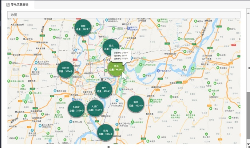 為降低此類問題的發(fā)生,并提高基站工作的可靠性,經(jīng)過6個月的努力,重慶思極聯(lián)合國網(wǎng)重慶信通分公司成功開發(fā)了停電信息及用能信息查詢程序,該程序可向用戶提供重慶區(qū)域內(nèi)全部電力供電線路計劃或臨時停電信息。同時也為鐵塔公司所運營基站提供基站用能信息查詢,從而實現(xiàn)實時掌握各基站的電能使用情況、電費繳納數(shù)據(jù)等信息,為鐵塔公司核算運營成本提供可靠依據(jù)。