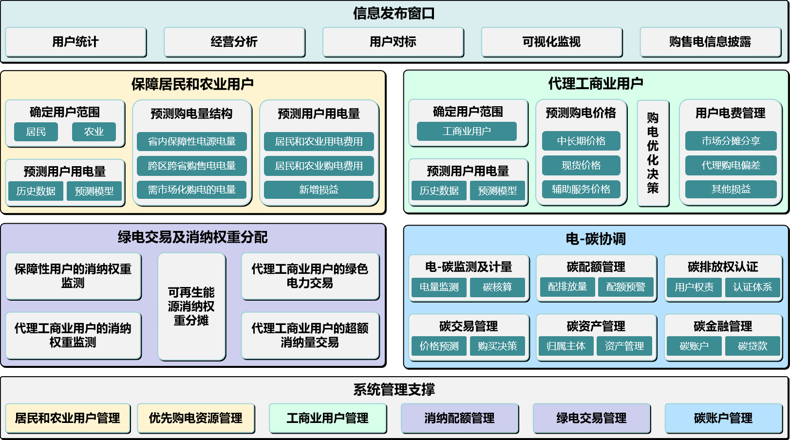 2021年11月30日,信產(chǎn)中電普華公司在能源研究會能源互聯(lián)網(wǎng)專委會上發(fā)布代理購電決策支撐工具平臺。代理購電決策支撐工具平臺的主要功能包括:保障居民與農(nóng)業(yè)用戶管理、代理工商業(yè)用戶管理、綠電交易及消納權(quán)重分配管理、電碳協(xié)調(diào)管理、信息發(fā)布窗口及系統(tǒng)管理支撐功能六大功能模塊。