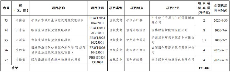 一、遵循公平、公正原則,經(jīng)委托國(guó)家可再生能源信息管理中心對(duì)各省(區(qū)、市)通過審核、公示無異議的項(xiàng)目進(jìn)行復(fù)核、匯總排序,擬將河北、山西等20個(gè)省(區(qū)、市)的77個(gè)項(xiàng)目納入2020年生物質(zhì)發(fā)電中央補(bǔ)貼規(guī)模,總裝機(jī)容量171.4萬千瓦,納入補(bǔ)貼范圍的項(xiàng)目所需補(bǔ)貼總額已達(dá)到2020年中央新增補(bǔ)貼資金額度15億元。其中,農(nóng)林生物質(zhì)發(fā)電項(xiàng)目18個(gè)、裝機(jī)容量53萬千瓦,垃圾焚燒發(fā)電項(xiàng)目46個(gè)、裝機(jī)容量116.3萬千瓦,沼氣發(fā)電項(xiàng)目13個(gè),裝機(jī)2.1萬千瓦,具體結(jié)果見附件。