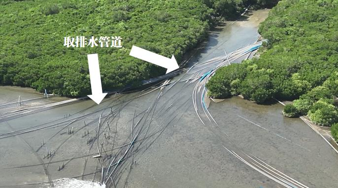 ▲圖4 2023年11月22日,督察組現(xiàn)場(chǎng)督察使用無(wú)人機(jī)拍攝,清瀾紅樹(shù)林省級(jí)自然保護(hù)區(qū)大量養(yǎng)殖塘取排水設(shè)施導(dǎo)致海灘被嚴(yán)重?cái)_動(dòng)侵蝕,溝壑密布,觸目驚心